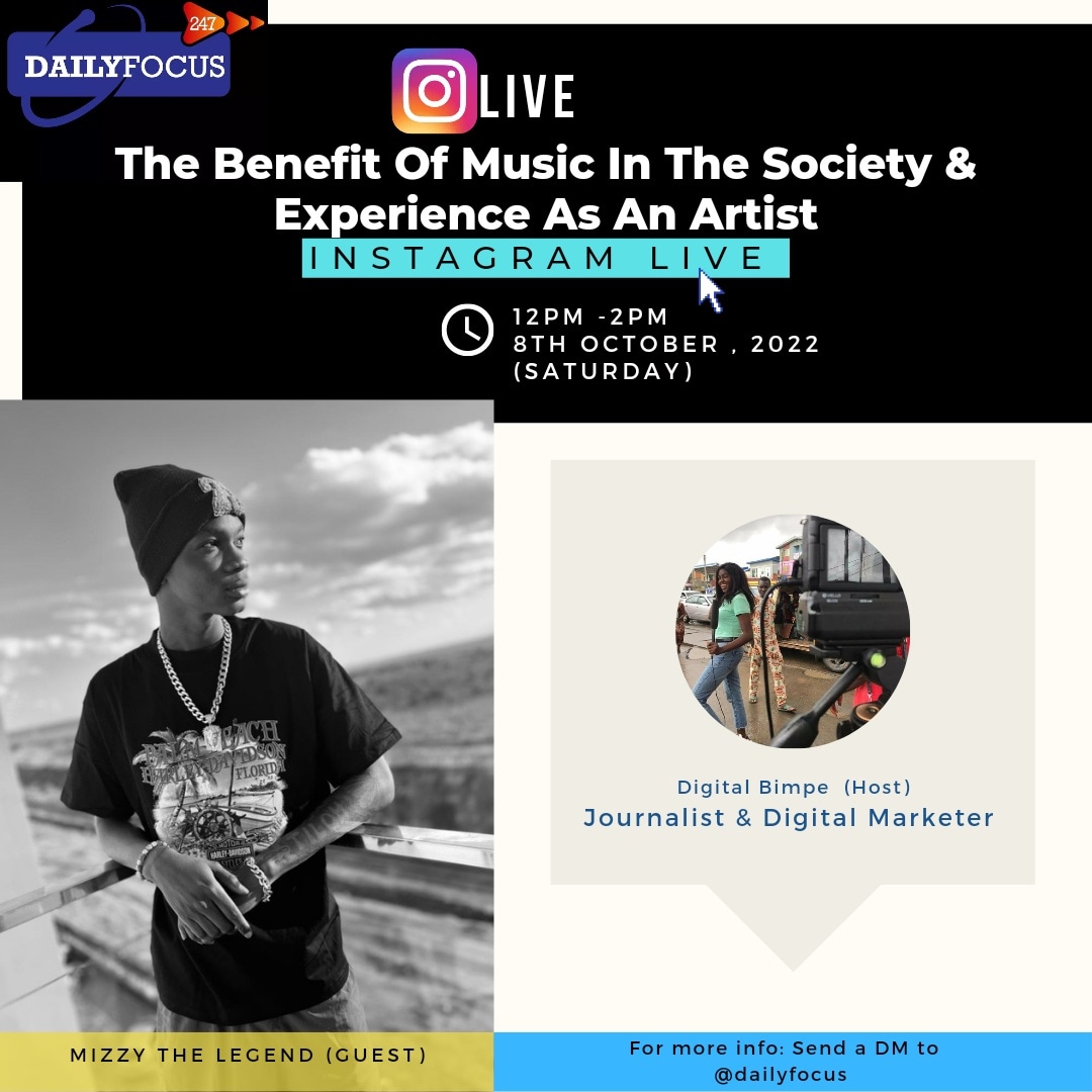 We will be discussing on the "The Benefit Of Music In The Society & Experience As An Artist"